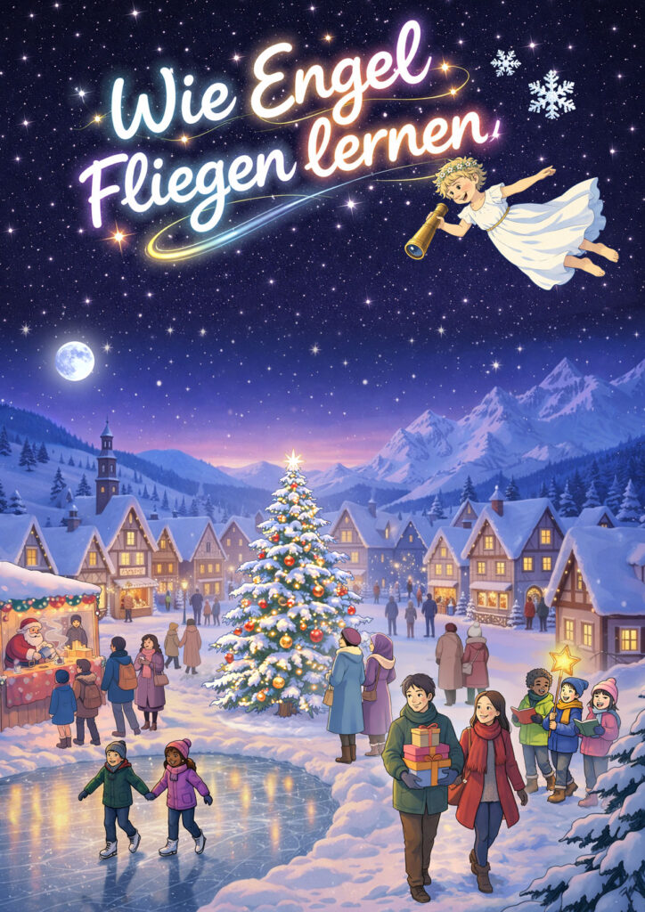 mit kleinen Lämpchen auf, essen Süßigkeiten, bis ihnen schlecht ist und packen Sachen in buntes Papier ein. Der Engel Bauz versteht das nicht und fragt Gott. „Die Menschen feiern Weihnachten.“ Aha, aber was ist das? Da Bauz ein Jungengel ist und noch nicht fliegen kann, verspricht Gott ihm Flügel, sollte er herausfinden, was Weihnachten ist. Auf der Suche nach einer Antwort „plumpst“ der Engel an verschiedene Orte und nimmt jedes Mal eine Antwort mit zurück in den Himmel. Doch leider liegt er damit nicht immer ganz richtig…